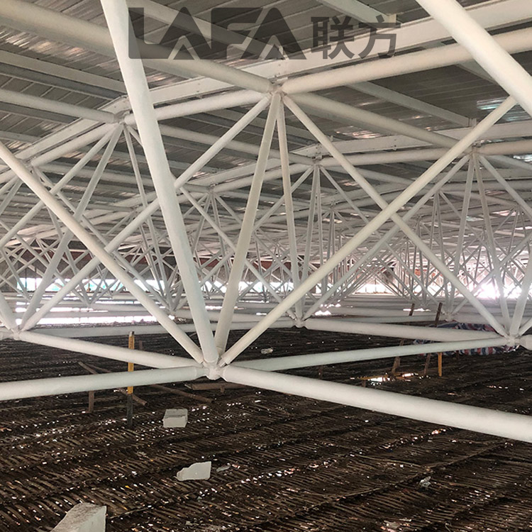 五、高空散裝的臨時支點應選用千斤頂為宜,這樣臨時支點可以逐步調整螺栓球網架高度。當安裝結束拆卸臨時支架時,可以自愛各支點間同步下降,分段卸荷。